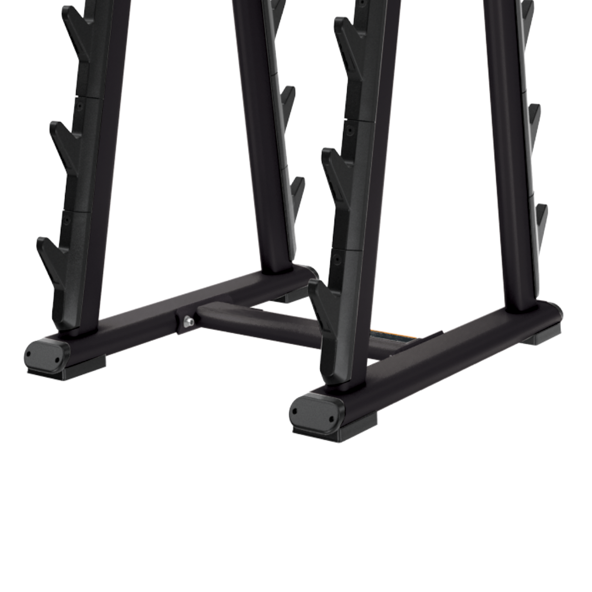 High-impact, polyurethane wear guards help protect the rack and barbells from metal-on-metal contact and are segmented for easy replacement.